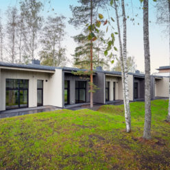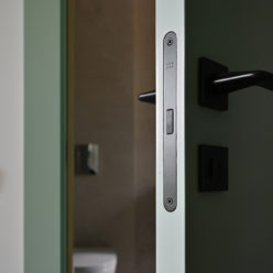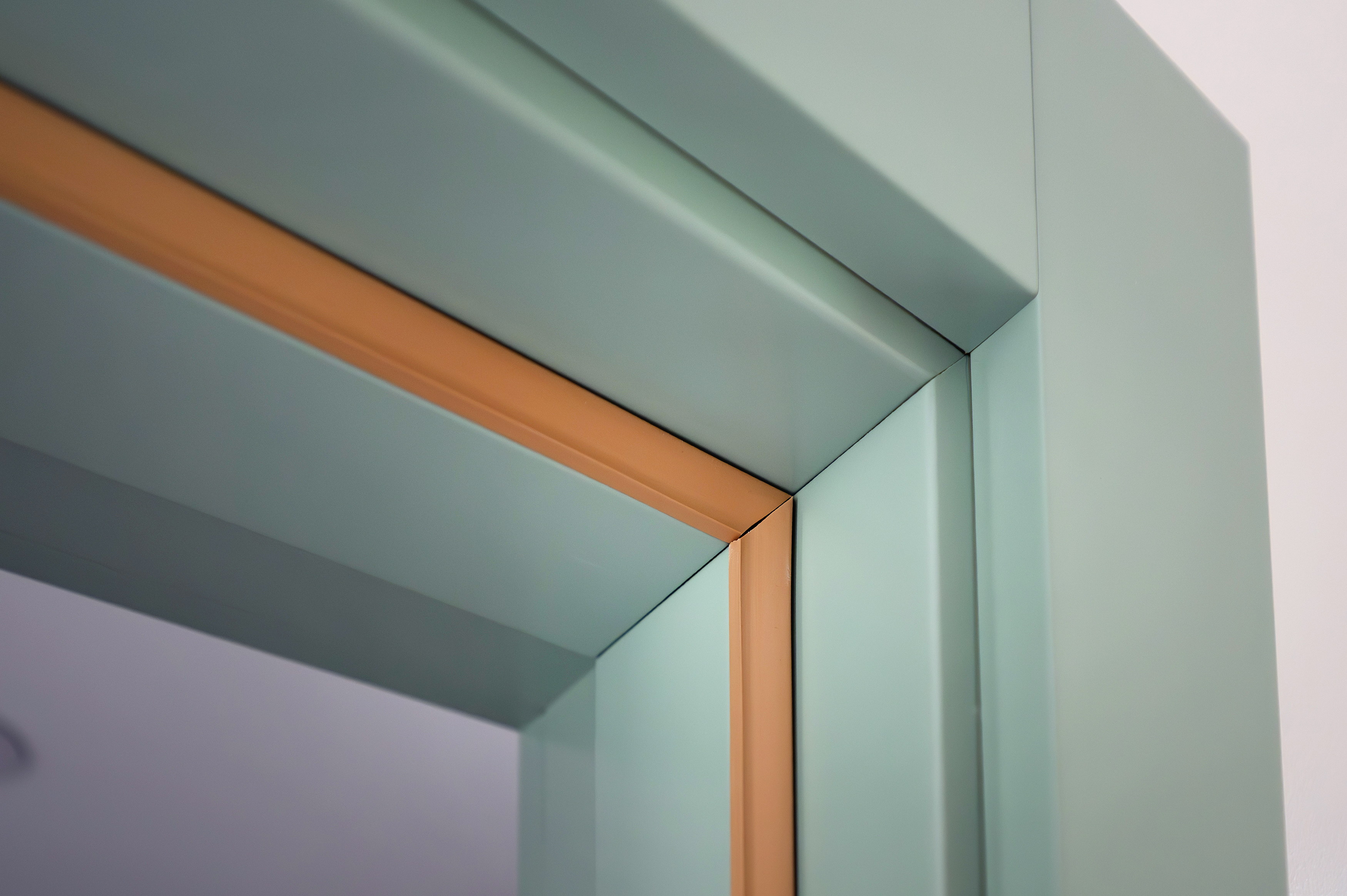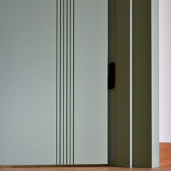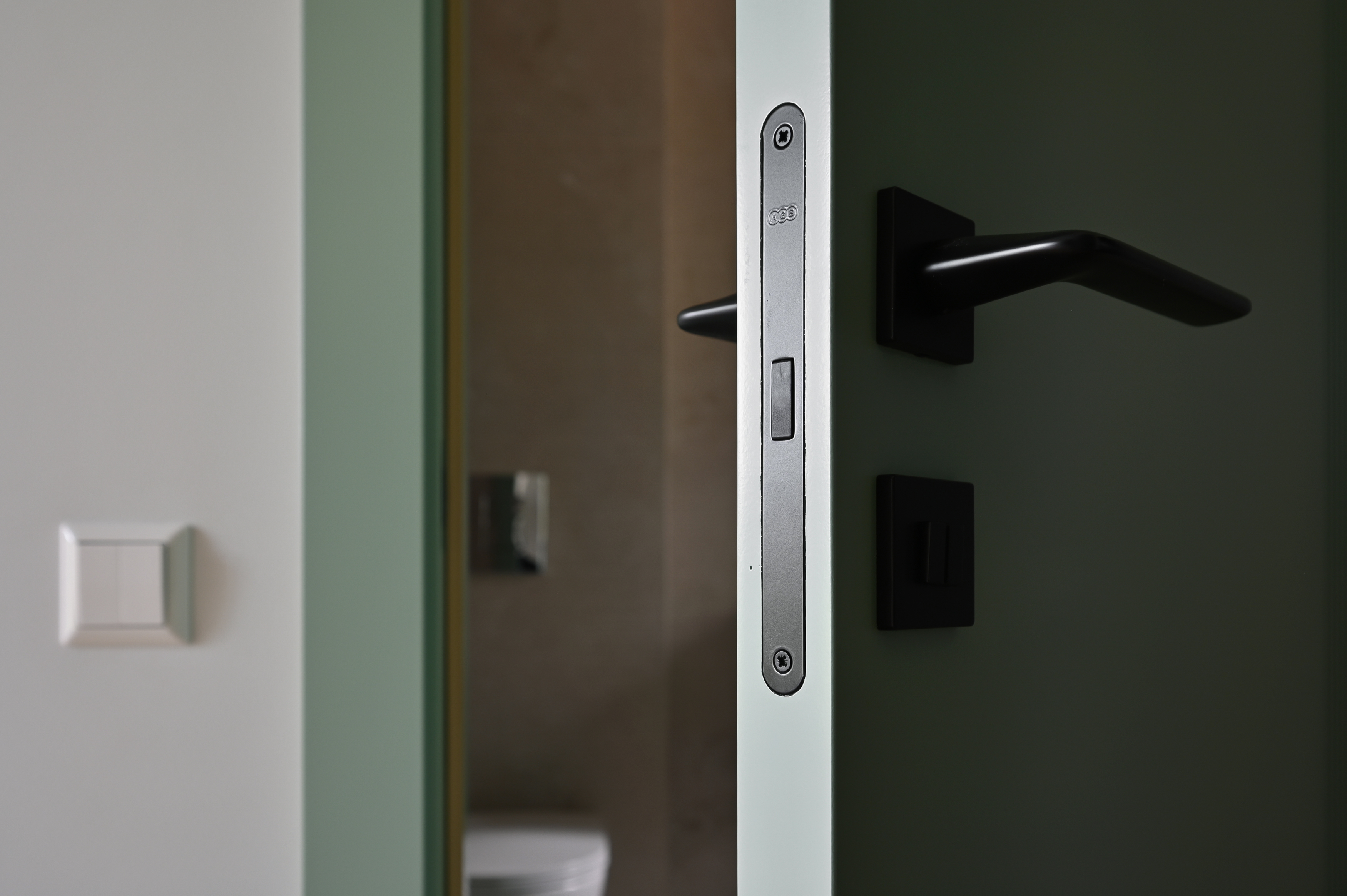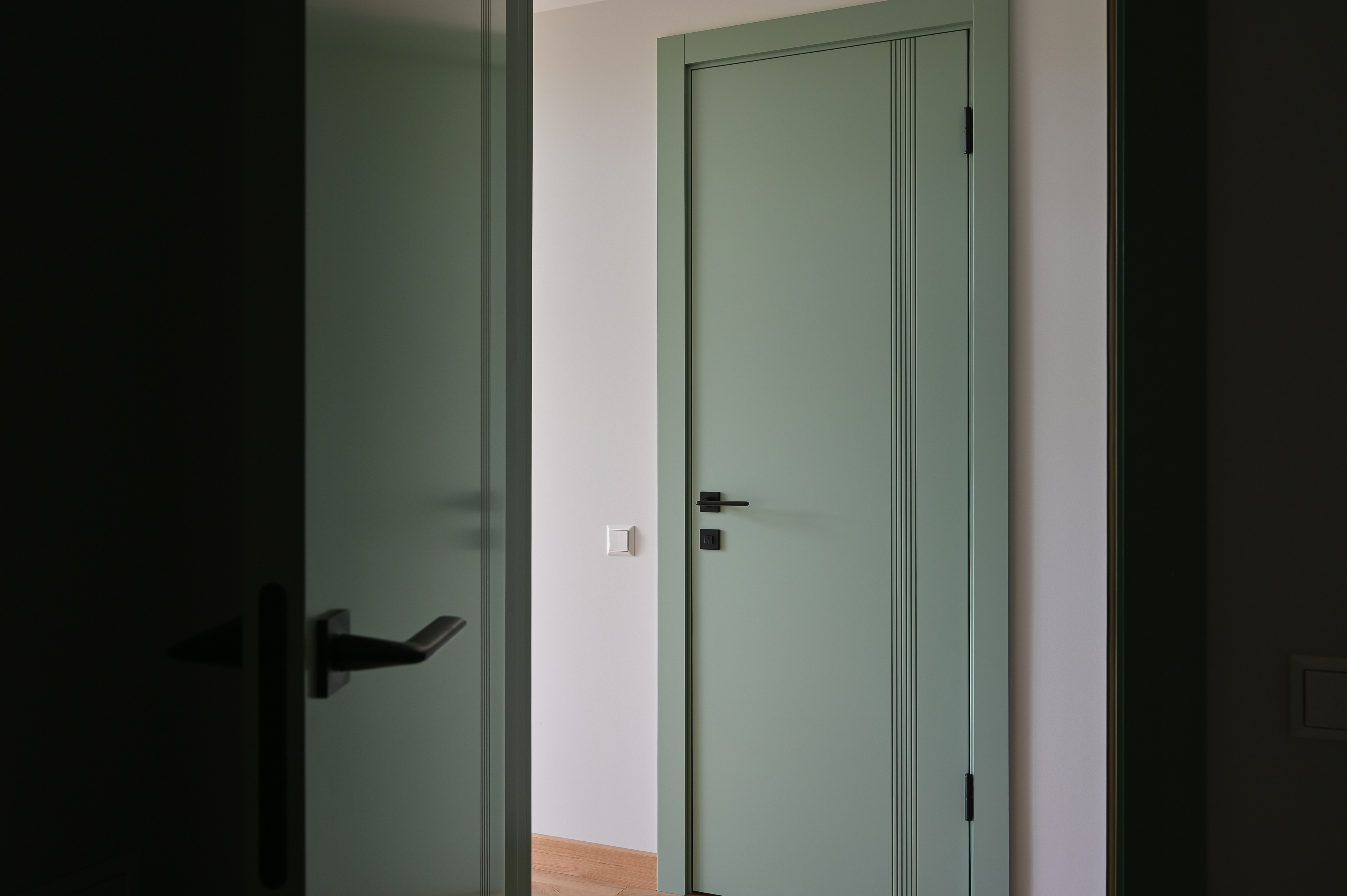Within the project, 24 door sets were manufactured and installed: smooth, painted doors with vertical grooves, fitted with black hardware.